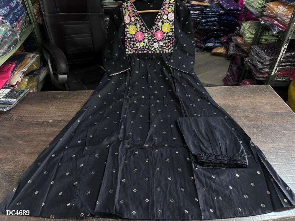 Color: Elegant black base highlighted with minimal white dot motifs and colorful neckline embroidery